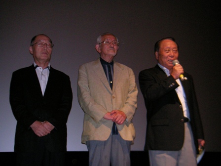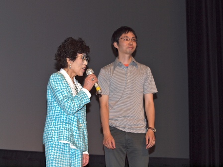 最終日、監督とともに舞台挨拶に立たれた三澤潔子山形県人東京連合会会長。「この作品のテーマは日本の地域文化。渡辺監督は若いけれど大きな作品を作った。」と励ましのお言葉をいただきました。