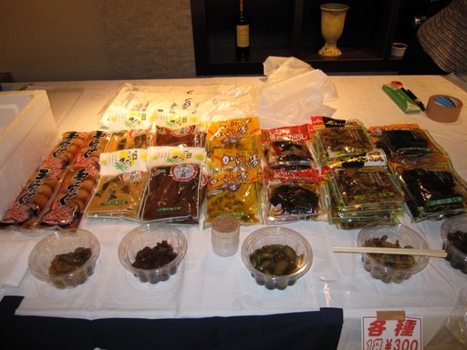 シソ巻き、とち餅、ぜんご漬け、小茄子のからし漬、珍しいところではヤーコンの粕漬などなど。山形、と一言で言っても名産品はそれぞれ。今回はJA櫛引農工連さんの現地スタッフが駆けつけていました。